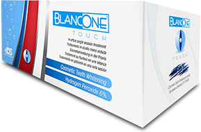 Thanks to BlancOne TOUCH your patients will enjoy a whiter smile, using the same principle of the home treatments (16% carbamide peroxide), but in a fast in-office session (3 applications, 8 minutes each) instead of recurring to weeks of home trays.