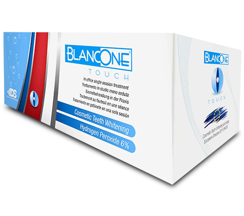 Thanks to BlancOne TOUCH your patients will enjoy a whiter smile, using the same principle of the home treatments (16% carbamide peroxide), but in a fast in-office session (3 applications, 8 minutes each) instead of recurring to weeks of home trays.